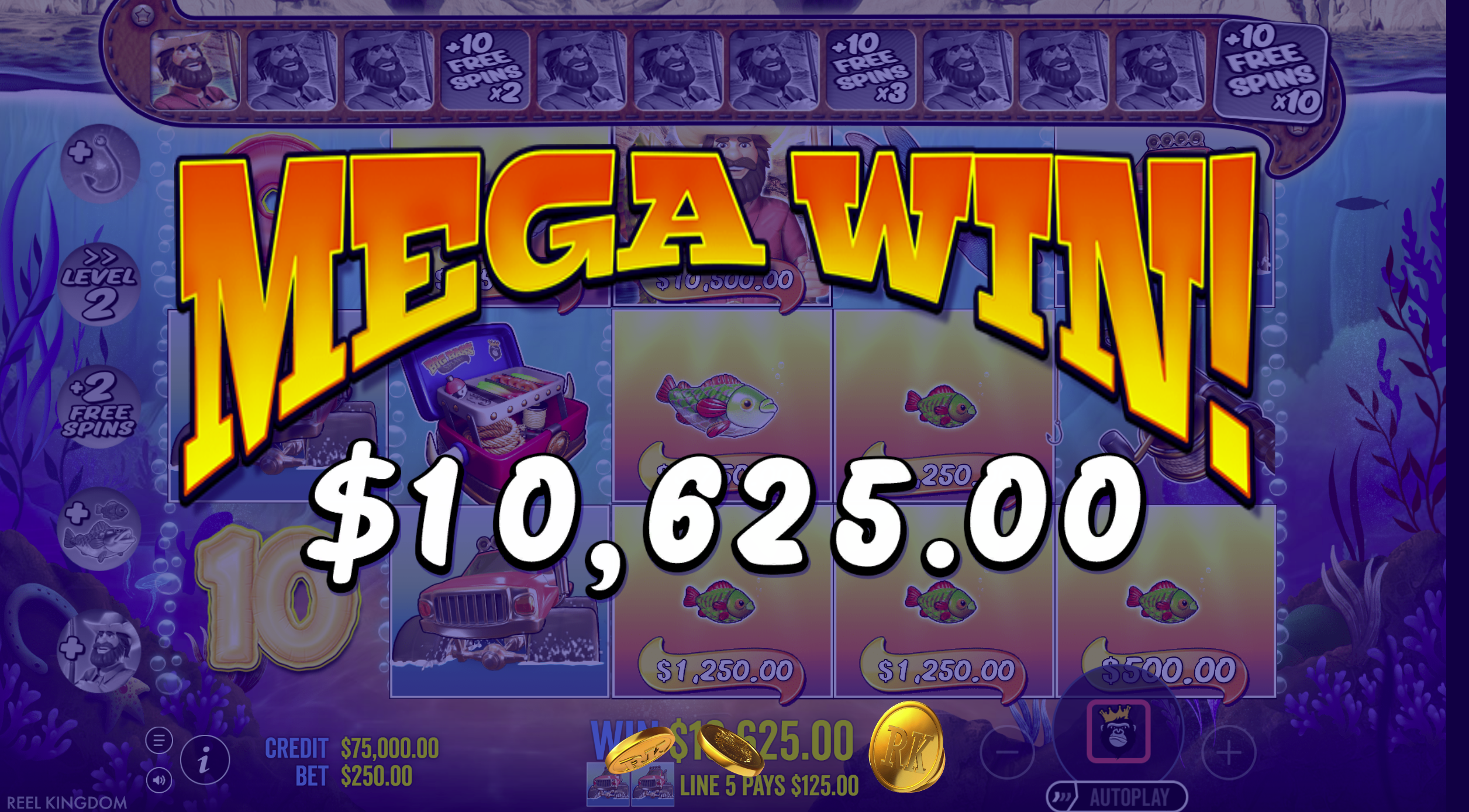 - Persistent Fisherman Wild: During free spins, Fisherman Wild remains fixed on reel 5 ensuring guaranteed collections.